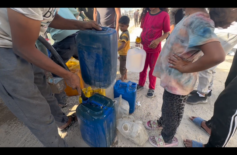 غزة/مواطنون يحاولون ملء قوارير المياه…