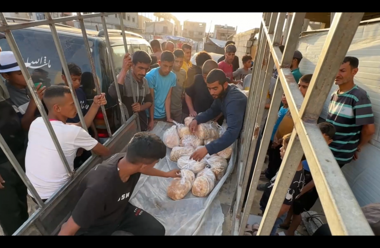 توزيع الخبز على النازحين في مخيم…