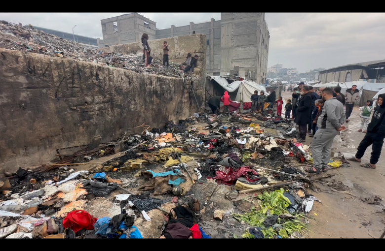 غزة/فيديو اندلاع النيران في خيمة أمل…
