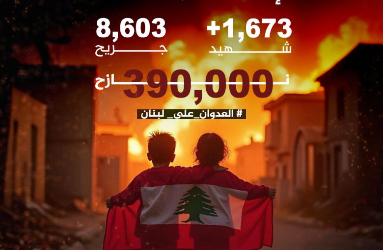 الإنسانية تحترق في لبنان / 3 October 2024 / Comments Log in to post comments لبنان الإنسانية تحترق في لبنان. 390,000 نازح 1673 شهيد 8603 جريح Albustan Media (71 لبنان جنوب لبنان الضاحية الجنوبية البقاع الغربي بيروت الانسانية تحترق في لبنان العدوان على لبنان شهداء جرحى حرب إنفوغراف Submit