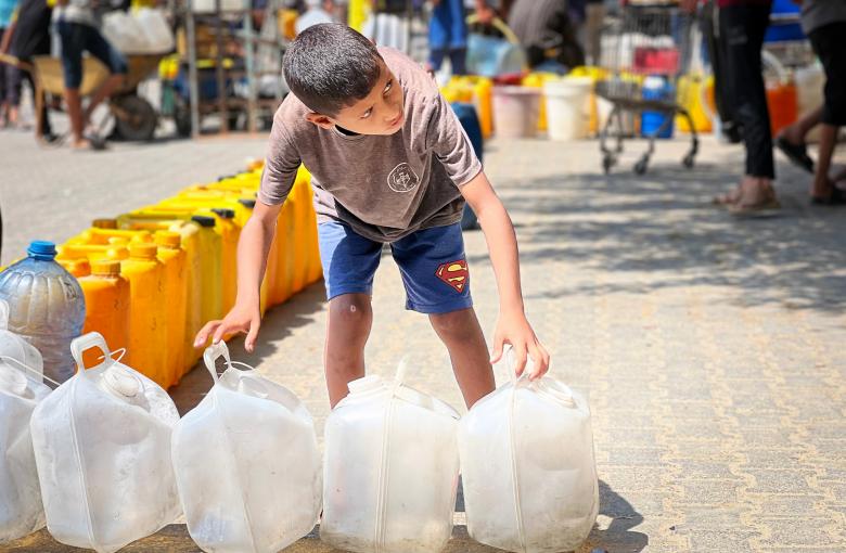 وينتظر الفلسطينيون جمع المياه من أحد الآبار المتبقية في مخيم النصيرات، وسط توقف الخدمات البلدية بسبب نقص الوقود وتدمير البنية التحتية. ويواجه الفلسطينيون صعوبات شديدة في الحصول على المياه نتيجة لهجمات الاحتلال المستمرة على قطاع غزة، وإغلاق المعابر الحدودية، وحظر دخول الوقود.