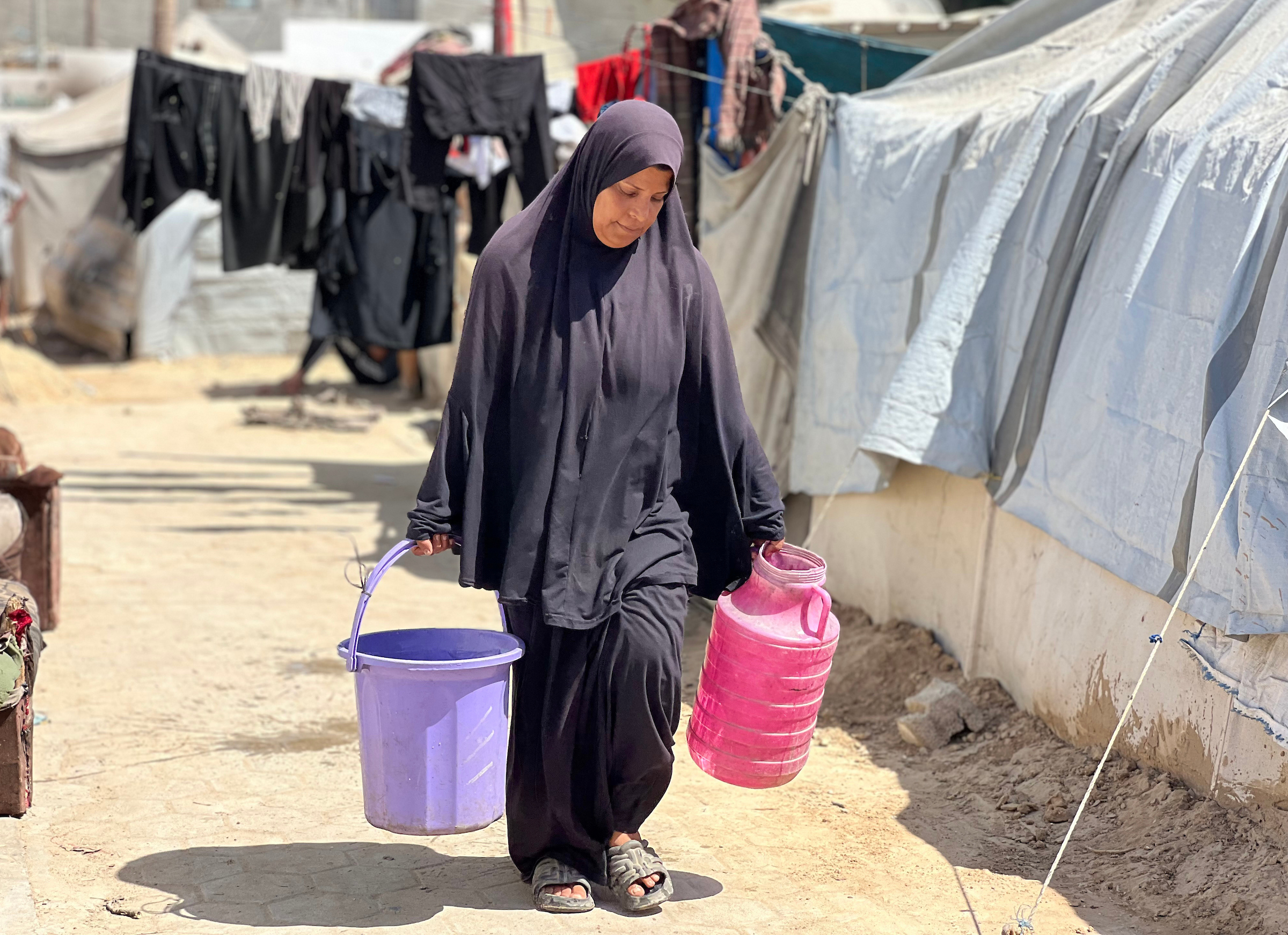 عائلات نازحة من شمال غزة لجأت إلى مدرسة تابعة للأونروا، حيث تكافح من أجل البقاء مع وصول محدود إلى المياه والغذاء والاحتياجات الأساسية في ظل القصف الإسرائيلي المكثف في مخيم النصيرات