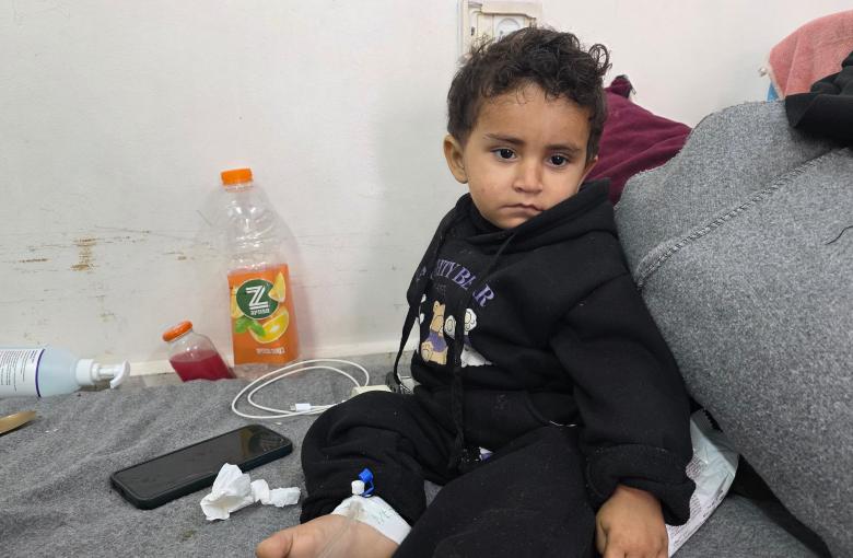 ويتلقى الأطفال المصابون بالتهاب السحايا العلاج في مستشفى ناصر في خان يونس، وسط تحذيرات طبية من تفشي المرض بشكل مثير للقلق داخل خيام النازحين بسبب الاكتظاظ الشديد وسوء الصرف الصحي، مما يخلق بيئة خصبة للأوبئة. خان يونس، جنوب قطاع غزة.