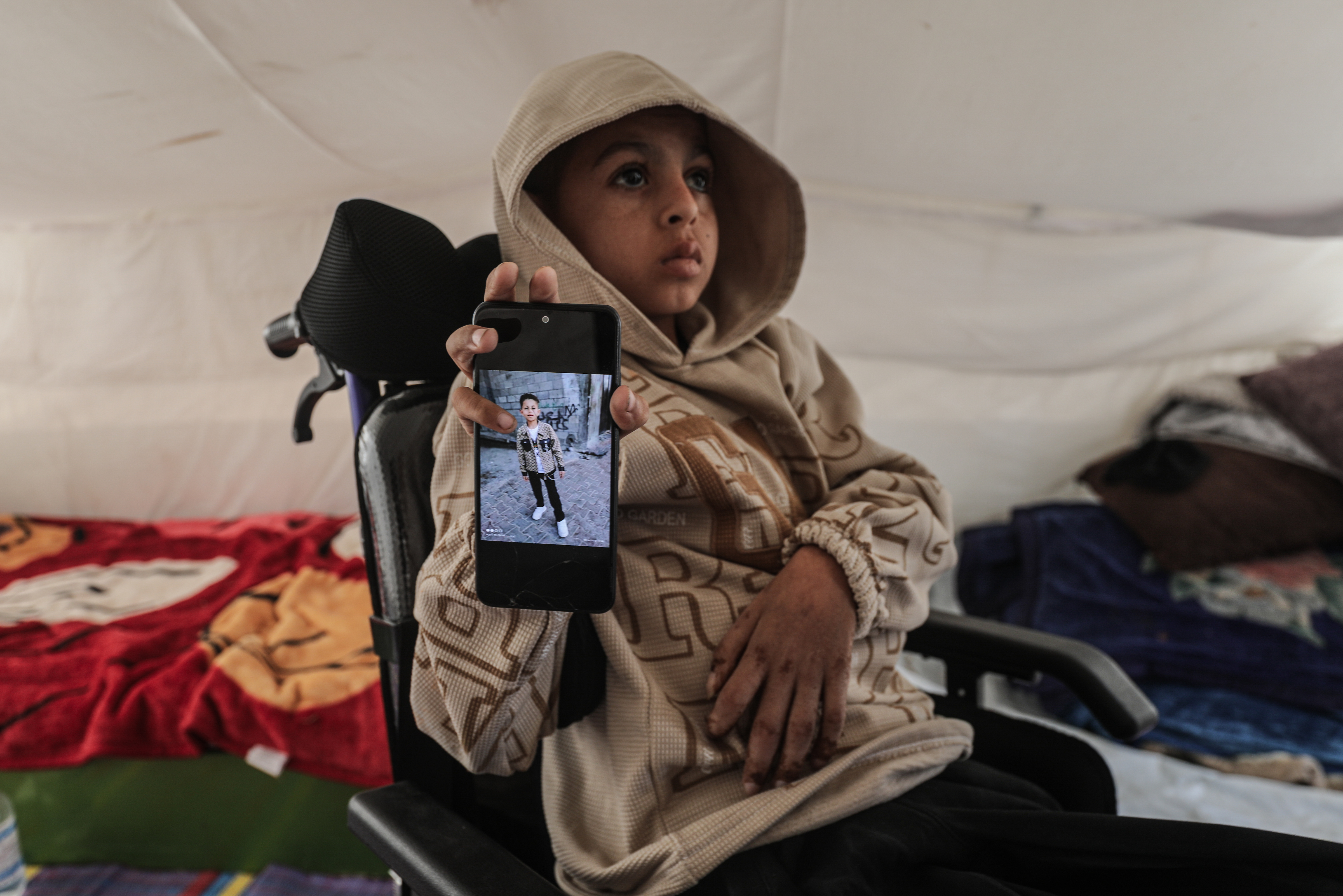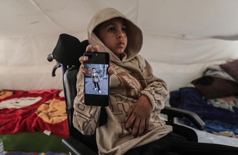 أصيب سيف رامي حجازي البالغ من العمر 13 عاماً بالشلل التام والفشل الكلوي بعد سقوط قذيفة مدفعية إسرائيلية بينما كانت عائلته تفكك خيمتها بعد أوامر بالإخلاء أثناء الحرب. وأدت القذيفة إلى مقتل والده وإصابته بجروح خطيرة. ولا يزال سيف يعاني من تدهور صحي حاد بسبب نقص العلاج، وحالته التي تهدد حياته معرضة لخطر التدهور. وتتولى والدته رعايته في ظروف إنسانية مزرية داخل خيمة في مخيم المغازي وسط قطاع غزة.