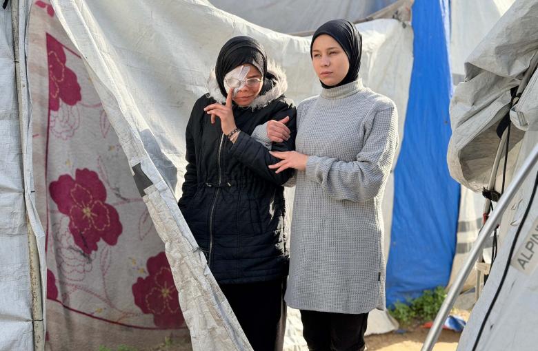 ندى رحمة، فتاة فلسطينية تبلغ من العمر 16 عاماً، نزحت في خيمة بمنطقة الزاوية وسط قطاع غزة، أصيبت بشظية في وجهها ويدها خلال غارة جوية للاحتلال بالقرب من خيمة عائلتها في مدينة غزة. فقدت البصر في إحدى عينيها وهي معرضة لخطر فقدان البصر في الأخرى إذا لم تتلق علاجاً طبياً عاجلاً.