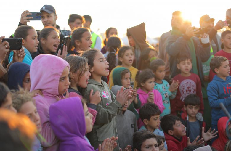 شارك الفلسطينيون في وجبة إفطار جماعية نظمتها مؤسسة خيرية للنازحين وسط أنقاض مخيم البريج للاجئين وسط قطاع غزة