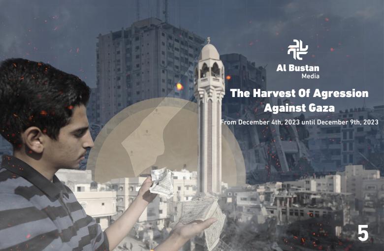The Harvest of Aggression against Gaza 5 / 20 December 2023 / Comments Log in to post comments غزة Albustan Media فلسطين حصاد تقرير احصائيات العدوان على غزة عدوان الاحتلال حرب حصار غزة طوفان الاقصى شهداء دمار جرحى مفقودين التقرير الأسبوعي Submit