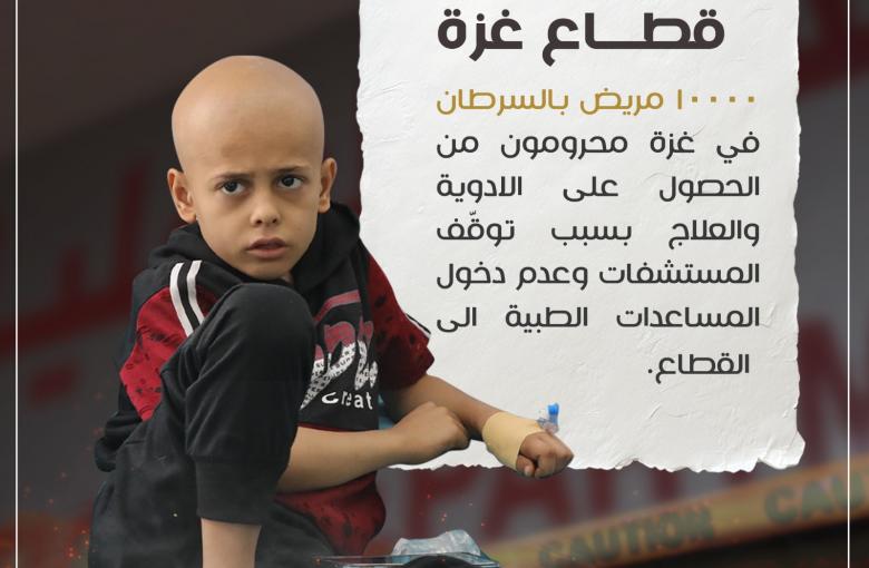 10,000 cancer patients in Gaza are deprived of medicines and treatments due to the lack of medical aids entering the Gaza strip