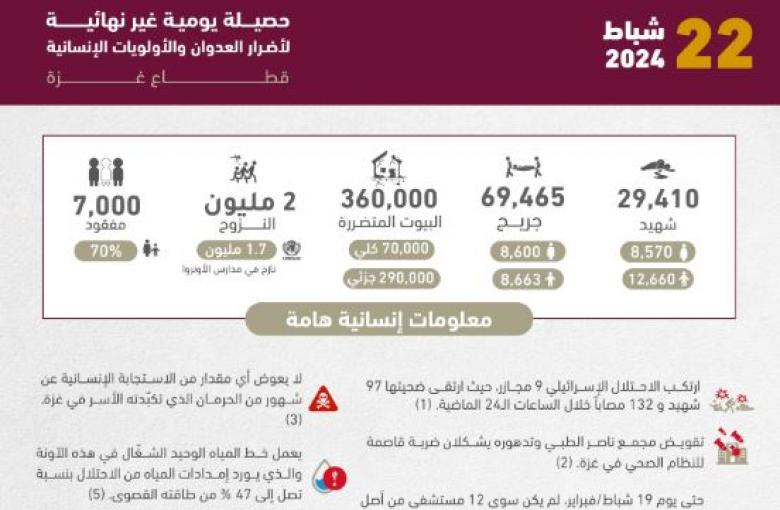 التقرير اليومي حصيلة يومية لأضرار العدوان على غزة - 2024/02/22 / 26 February 2024 / Comments Log in to post comments غزة التقرير اليومي حصيلة يومية لأضرار العدوان على غزة - 2024/02/22 Albustan Media فلسطين غزة قطاع غزة تقرير يومي حصيلة يومية اضرار جرحى مصابين شهداء حرب حصار غزة عدوان على غزة التقرير اليومي Submit