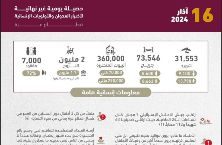 التقرير اليومي حصيلة يومية لأضرار العدوان على غزة - 2024/03/16 / 18 March 2024 / Comments Log in to post comments غزة التقرير اليومي حصيلة يومية لأضرار العدوان على غزة - 2024/03/16 Albustan Media (71 فلسطين غزة قطاع غزة اضرار تقرير يومي حصيلة يومية دمار حرب حصار غزة عدوان على غزة التقرير اليومي Submit