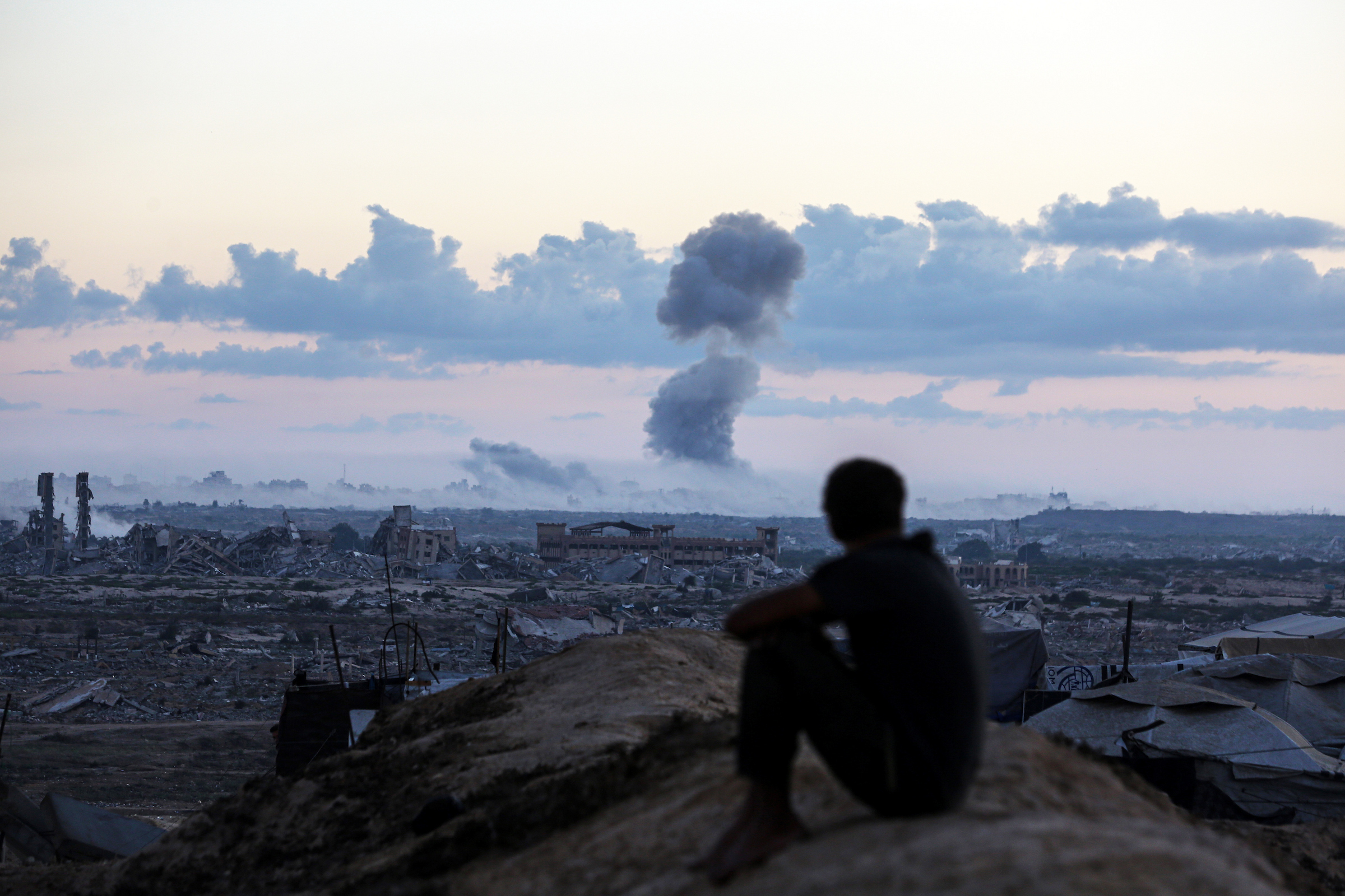 النصيرات / غزة / 8 October 2025 / Comments Log in to post comments غزة يتصاعد الدخان فوق مدينة غزة الجنوبية عقب سلسلة من الغارات الجوية الإسرائيلية، بينما تشرق الشمس على خيام تؤوي الفلسطينيين النازحين في منطقة النصيرات، وسط قطاع غزة albustan media دخان استهداف غزة فلسطين النصيرات حرب رجل حزن غارة غارات خيام خيم صور Submit