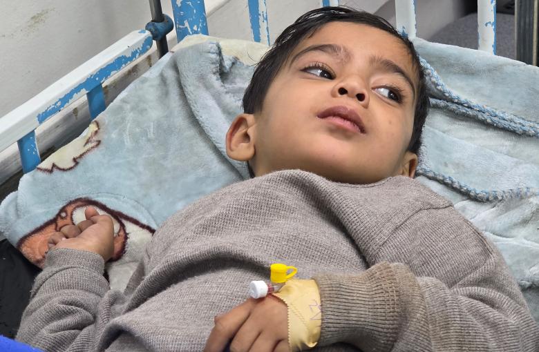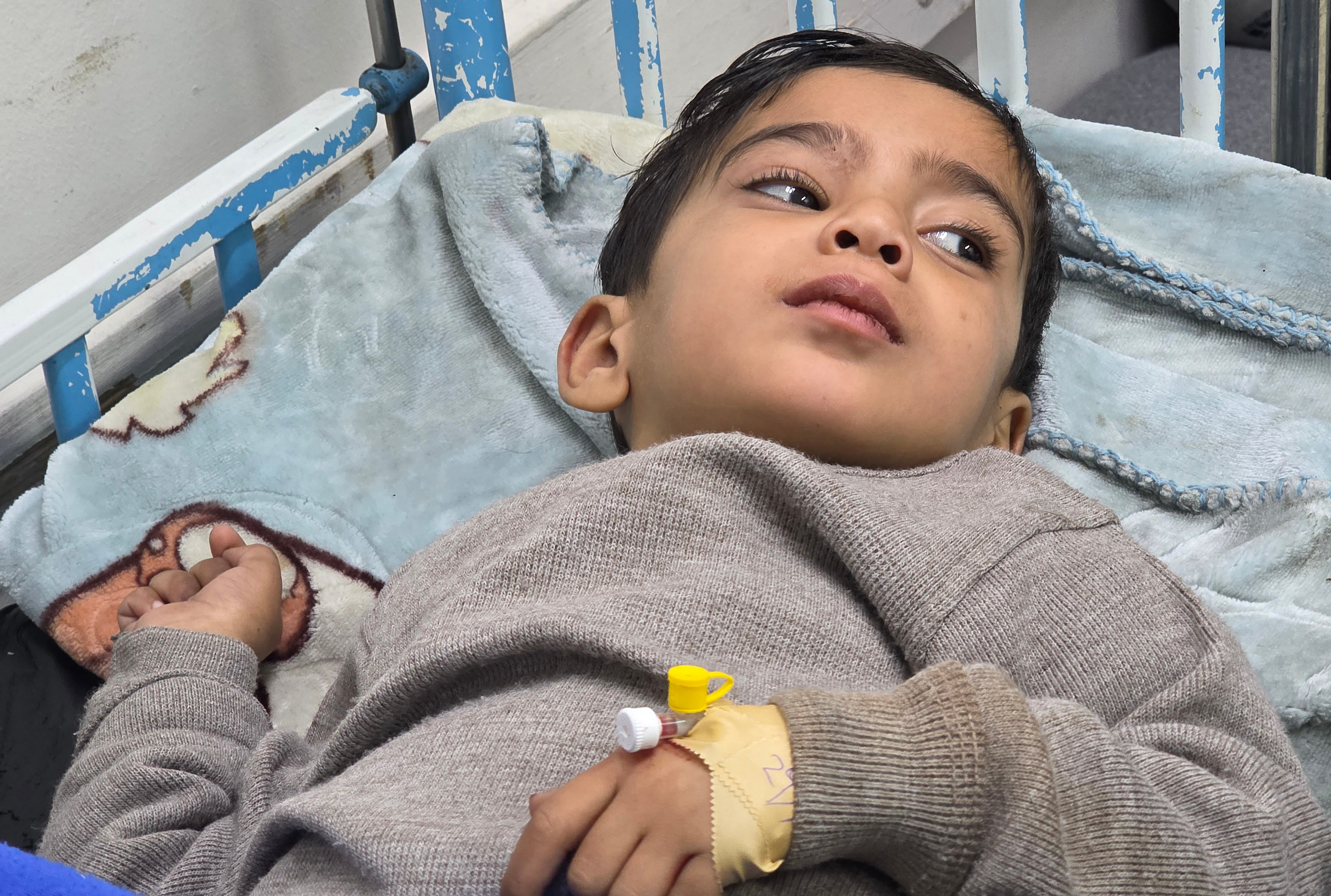 ويتلقى الأطفال المصابون بالتهاب السحايا العلاج في مستشفى ناصر في خان يونس، وسط تحذيرات طبية من تفشي المرض بشكل مثير للقلق داخل خيام النازحين بسبب الاكتظاظ الشديد وسوء الصرف الصحي، مما يخلق بيئة خصبة للأوبئة. خان يونس، جنوب قطاع غزة.