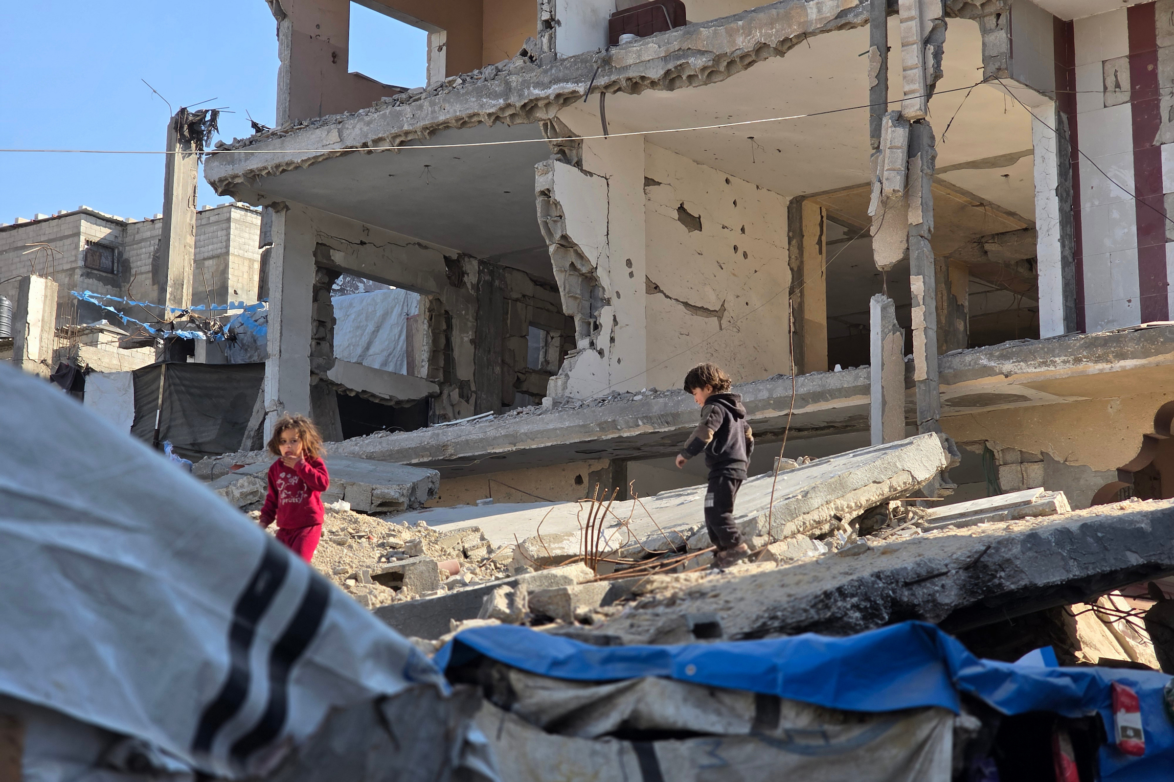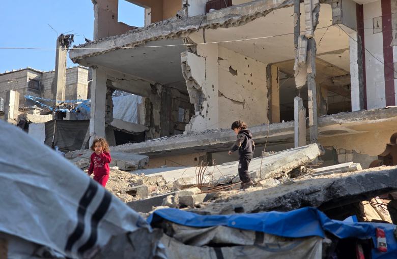 تستعد عائلة هاشم خلف الفلسطينية للإفطار في رمضان وسط أنقاض منزلها المكون من أربعة طوابق، والذي دمره القصف الإسرائيلي جزئيا في مخيم خان يونس جنوب خان يونس في قطاع غزة