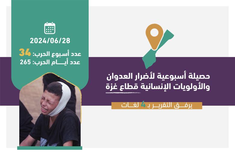 حصيلة العدوان على قطاع غزة الأسبوع 34…