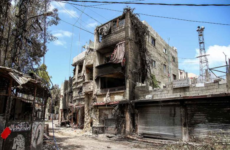 دمار فادح لحق بمخيم عين الحلوة في صيدا جنوب لبنان، بعد ارتفاع حدَّة الاشتباكات داخل المخيم.