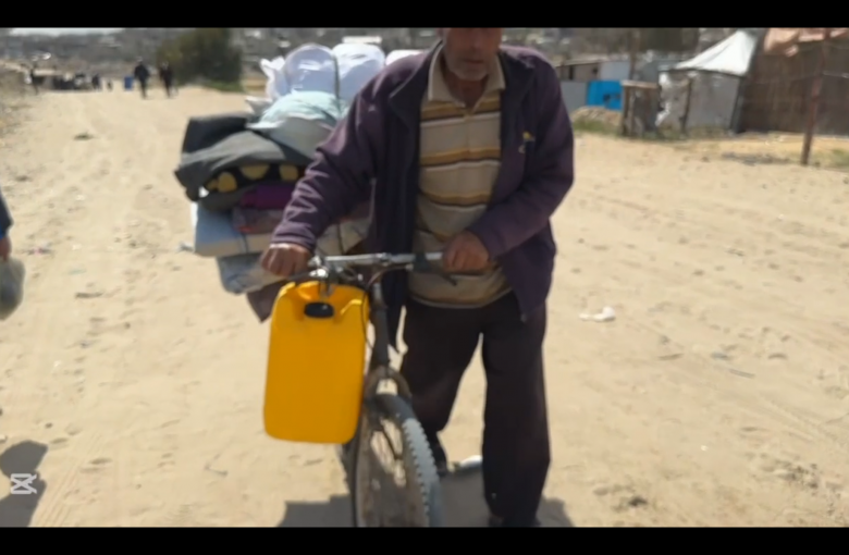 خانيونس/فيديو ناقلة مياه توزع المياه النظيفة على الفلسطينيين في منطقة المواصي في خان يونس