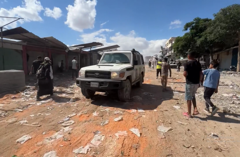 خانيونس/فيديو شاحنات المساعدات التابعة لبرنامج الأغذية العالمي التابع للأمم المتحدة تنتقل من معبر كرم أبو سالم الحدودي باتجاه خان يونس