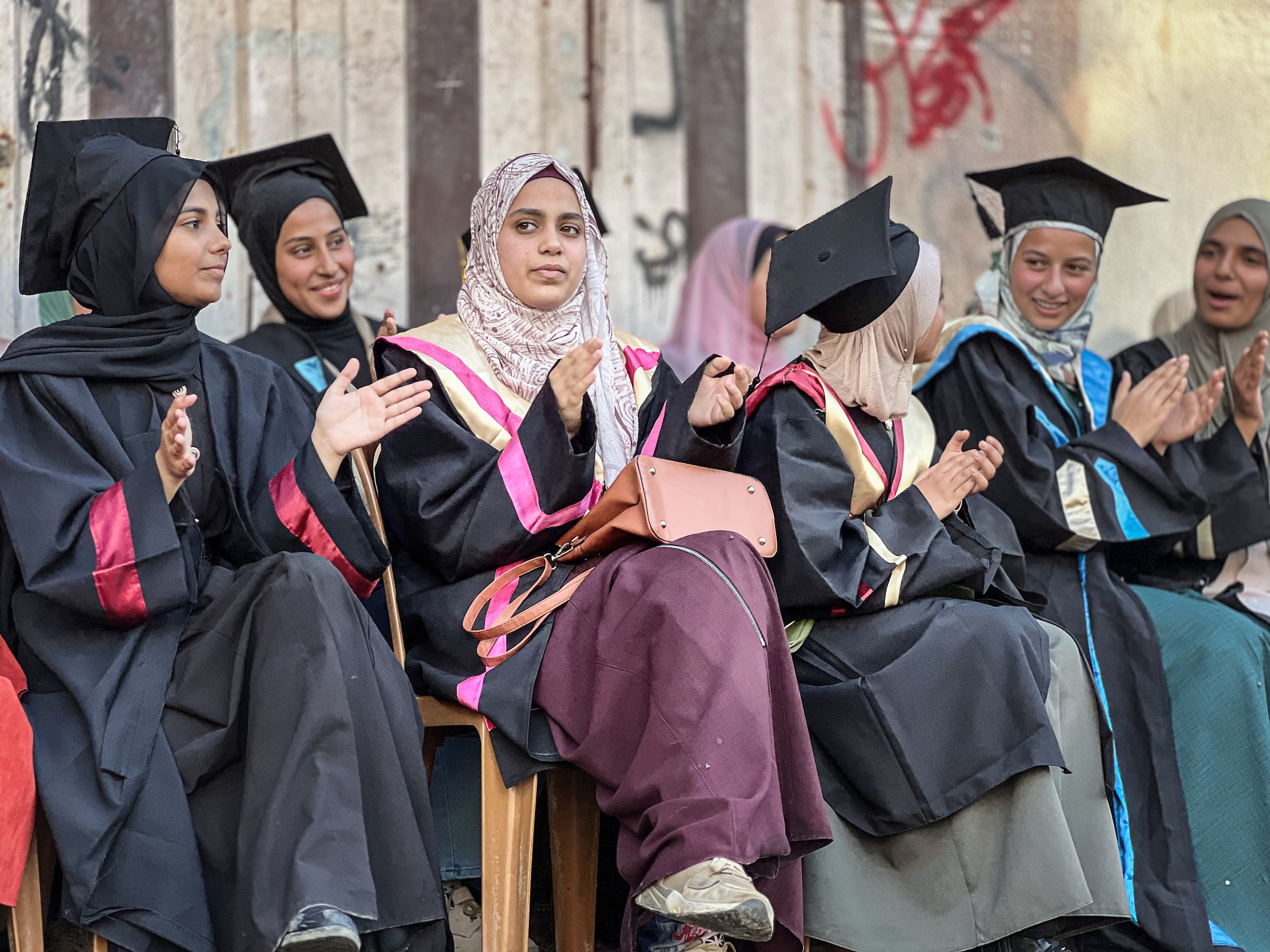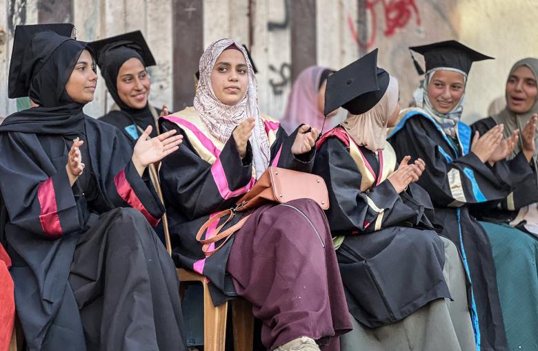 فلسطينيون يشاركون في حفل تكريم طلاب المدارس الثانوية الذين فقدوا والديهم خلال الحرب، والذي أقيم في مخيم النصيرات بوسط قطاع غزة. وتضمن الحدث، الذي نظمه فريق إغاثة محلي، أنشطة ودعمًا عاطفيًا للطلاب. وتتضمن اللقطات مقابلات مع عدد من الطلاب يتحدثون فيها عن رحلتهم التعليمية والظروف الصعبة التي يواجهونها بعد فقدان عائلاتهم. مخيم النصيرات، وسط قطاع غزة.