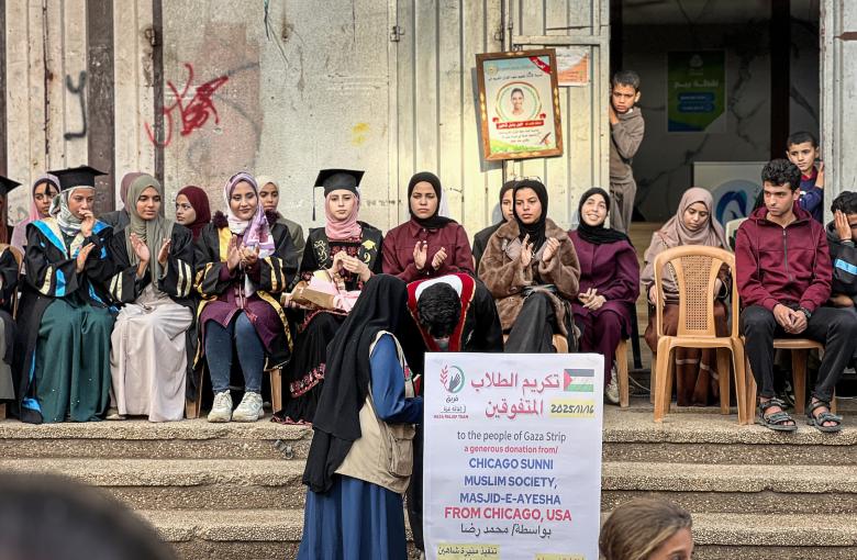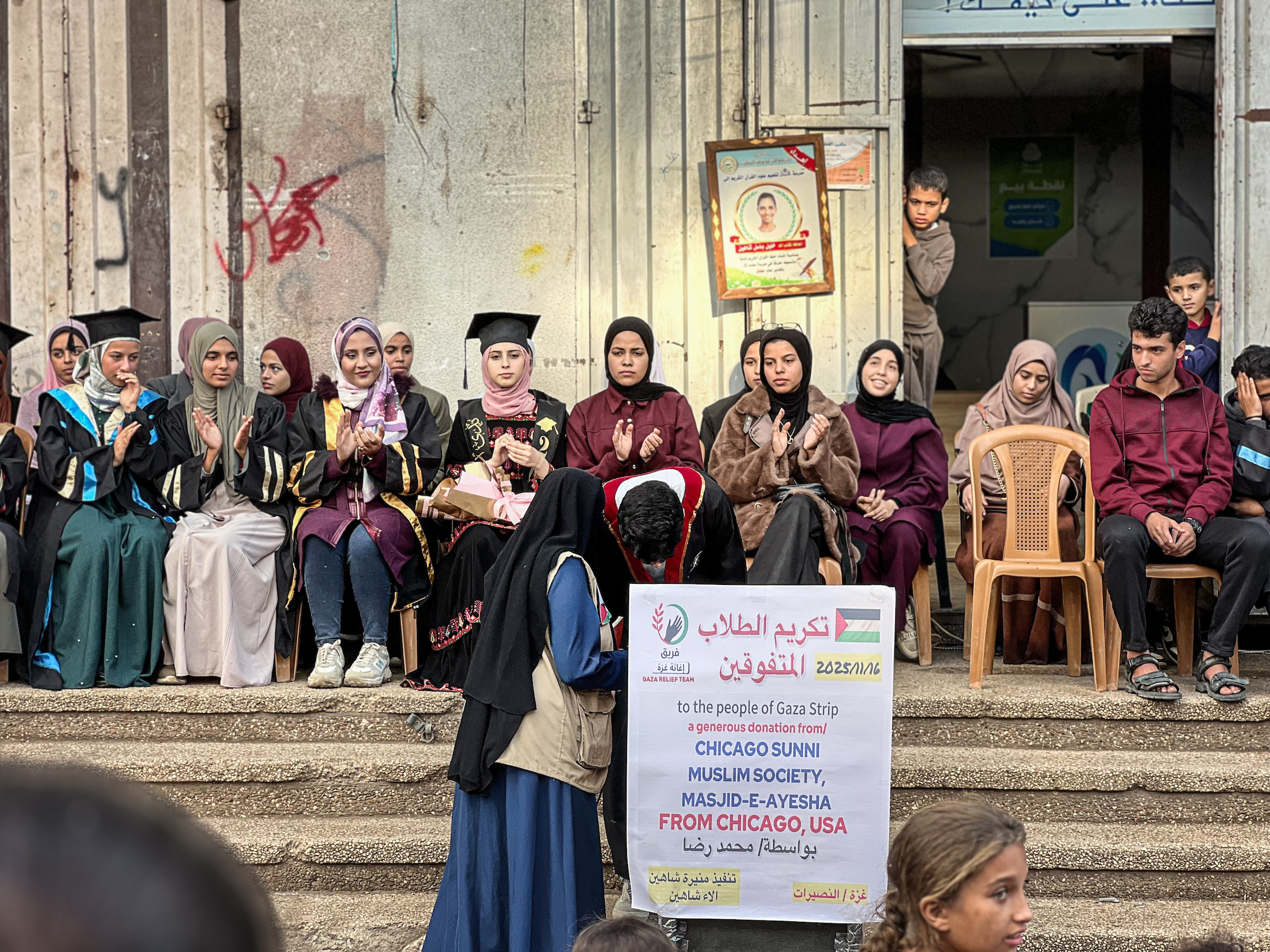 فلسطينيون يشاركون في حفل تكريم طلاب المدارس الثانوية الذين فقدوا والديهم خلال الحرب، والذي أقيم في مخيم النصيرات بوسط قطاع غزة. وتضمن الحدث، الذي نظمه فريق إغاثة محلي، أنشطة ودعمًا عاطفيًا للطلاب. وتتضمن اللقطات مقابلات مع عدد من الطلاب يتحدثون فيها عن رحلتهم التعليمية والظروف الصعبة التي يواجهونها بعد فقدان عائلاتهم. مخيم النصيرات، وسط قطاع غزة.
