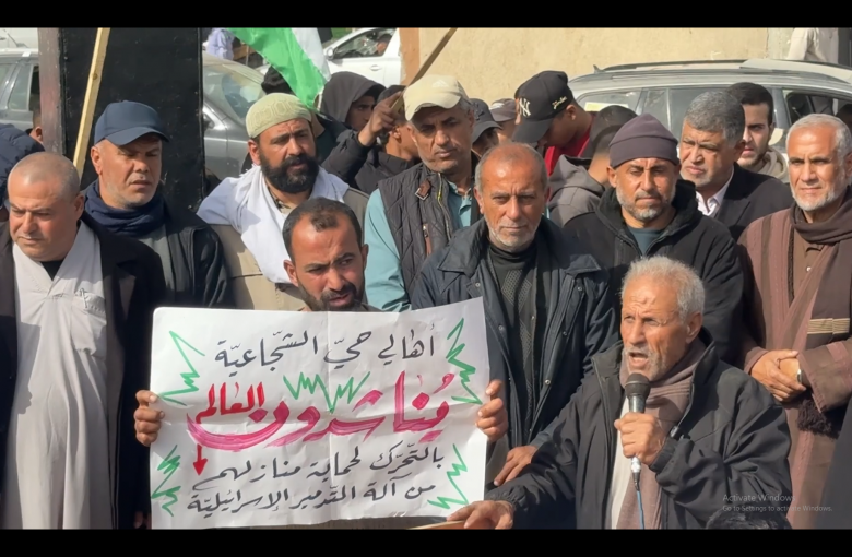 فلسطينيون يشاركون في احتجاج بوسط مدينة غزة للتعبير عن رفضهم لهجمات الاحتلال المستمرة.