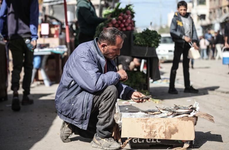 وتوافد الفلسطينيون على السوق الشعبي في دير البلح، وسط قطاع غزة، في الأيام التي سبقت شهر رمضان. ومع سماح الاحتلال جزئيا بدخول المساعدات والسلع التجارية، عادت المواد الغذائية إلى أكشاك السوق، في حين لا يزال السكان يعانون من ظروف إنسانية واقتصادية صعبة للغاية.