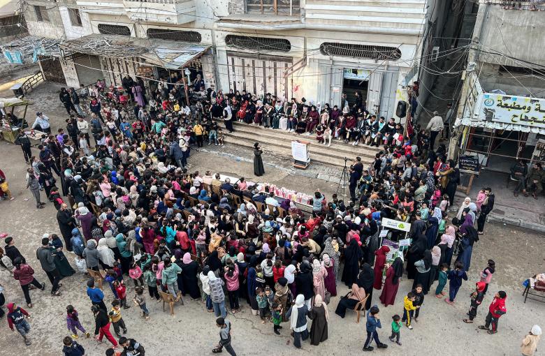 فلسطينيون يشاركون في حفل تكريم طلاب المدارس الثانوية الذين فقدوا والديهم خلال الحرب، والذي أقيم في مخيم النصيرات بوسط قطاع غزة. وتضمن الحدث، الذي نظمه فريق إغاثة محلي، أنشطة ودعمًا عاطفيًا للطلاب. وتتضمن اللقطات مقابلات مع عدد من الطلاب يتحدثون فيها عن رحلتهم التعليمية والظروف الصعبة التي يواجهونها بعد فقدان عائلاتهم. مخيم النصيرات، وسط قطاع غزة.