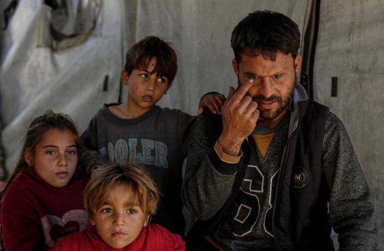 ويكافح الفلسطيني لؤي أسامة صبح، 27 عاماً، الذي أصيب بإعاقات دائمة لمواصلة حياته اليومية داخل خيمته في مدينة غزة. وفقد صبح عينيه وبصره تماما عندما أصيب أثناء محاولته استعادة متعلقاته من منزل عائلته المدمر خلال هجوم. كما أصيب بجروح في صدره وذراعه. ويعيش صبح، الذي يرتدي الآن عدسات صناعية لتغطية الأضرار التي لحقت بعينيه، مع زوجته وأطفاله الأربعة في خيمة مؤقتة، ويتحمل مشقة مستمرة وسط الظروف المدمرة في الجيب المعزول.